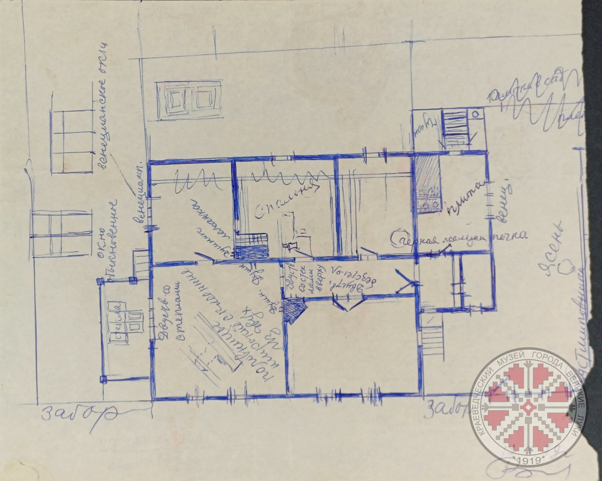Фото 3, 4. Набросок плана Великолукского дома Виноградовых и его оборотная сторона. Выполнены Виноградовым И.М. 1970 г.