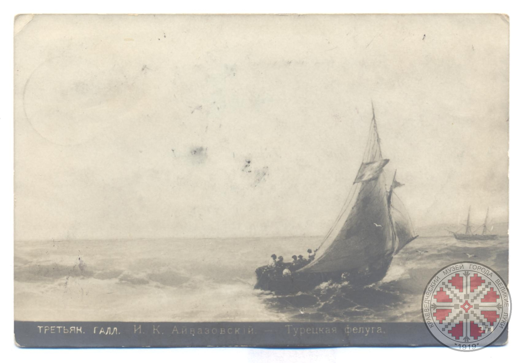 Фото 1. Письмо открытое И.М. Виноградову от тети с видом картины И.К. Айвазовского «Турецкая фелуга». 1908 г.;
