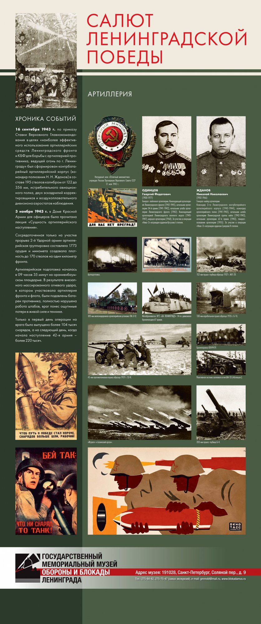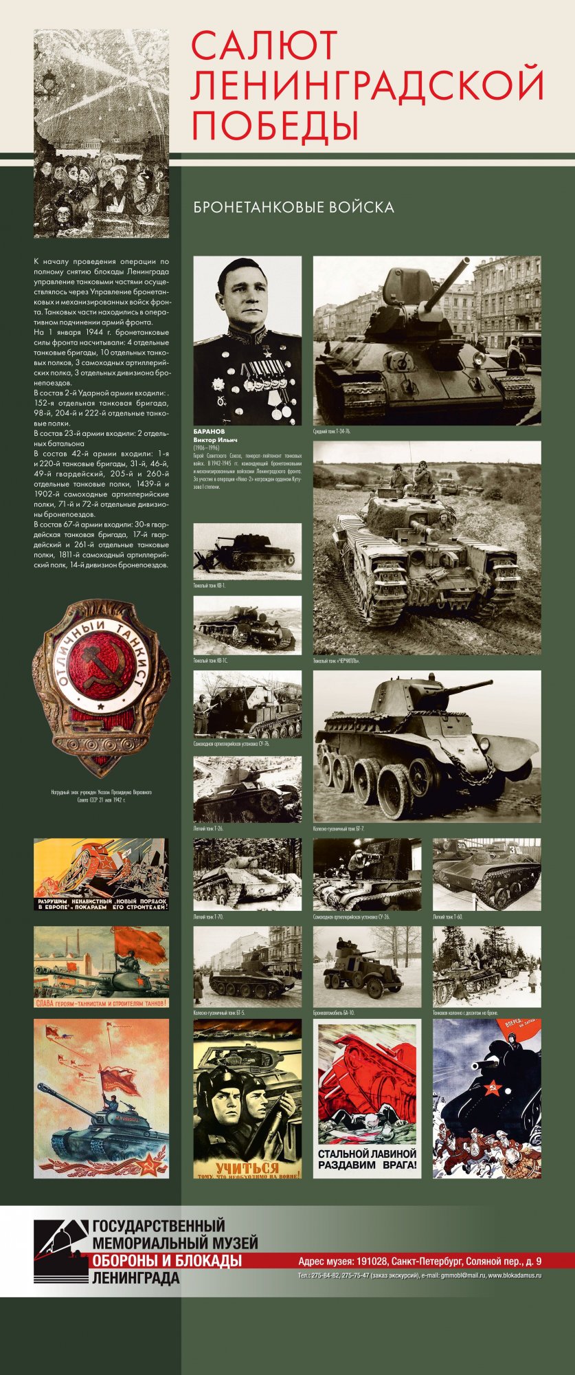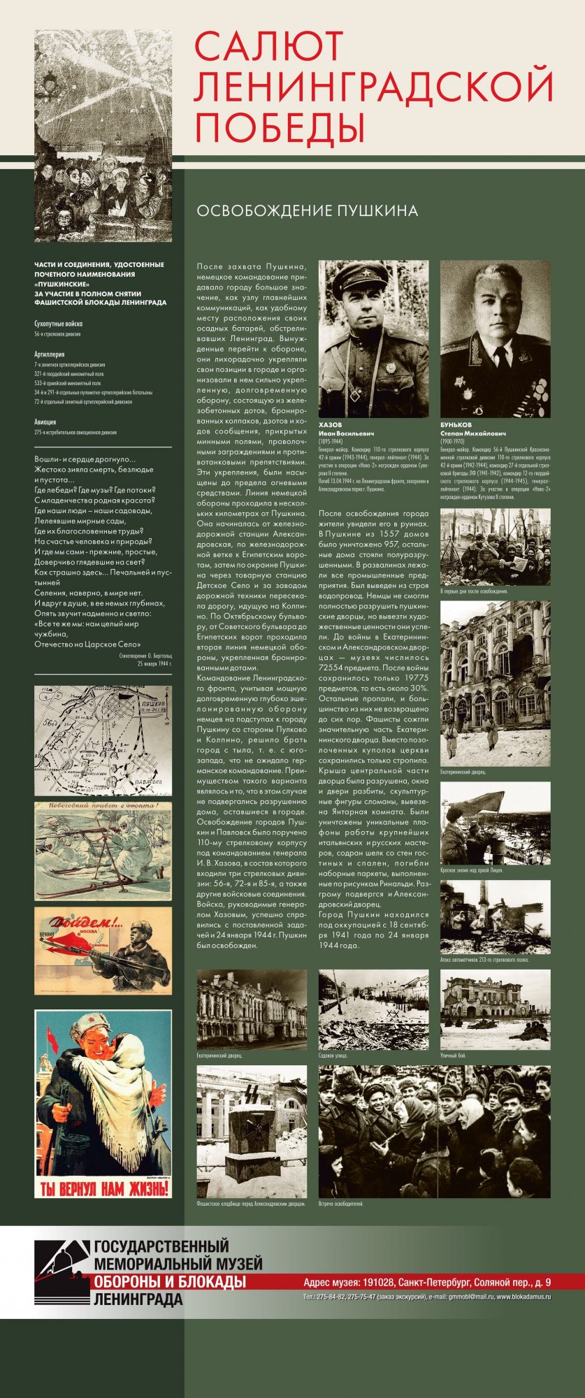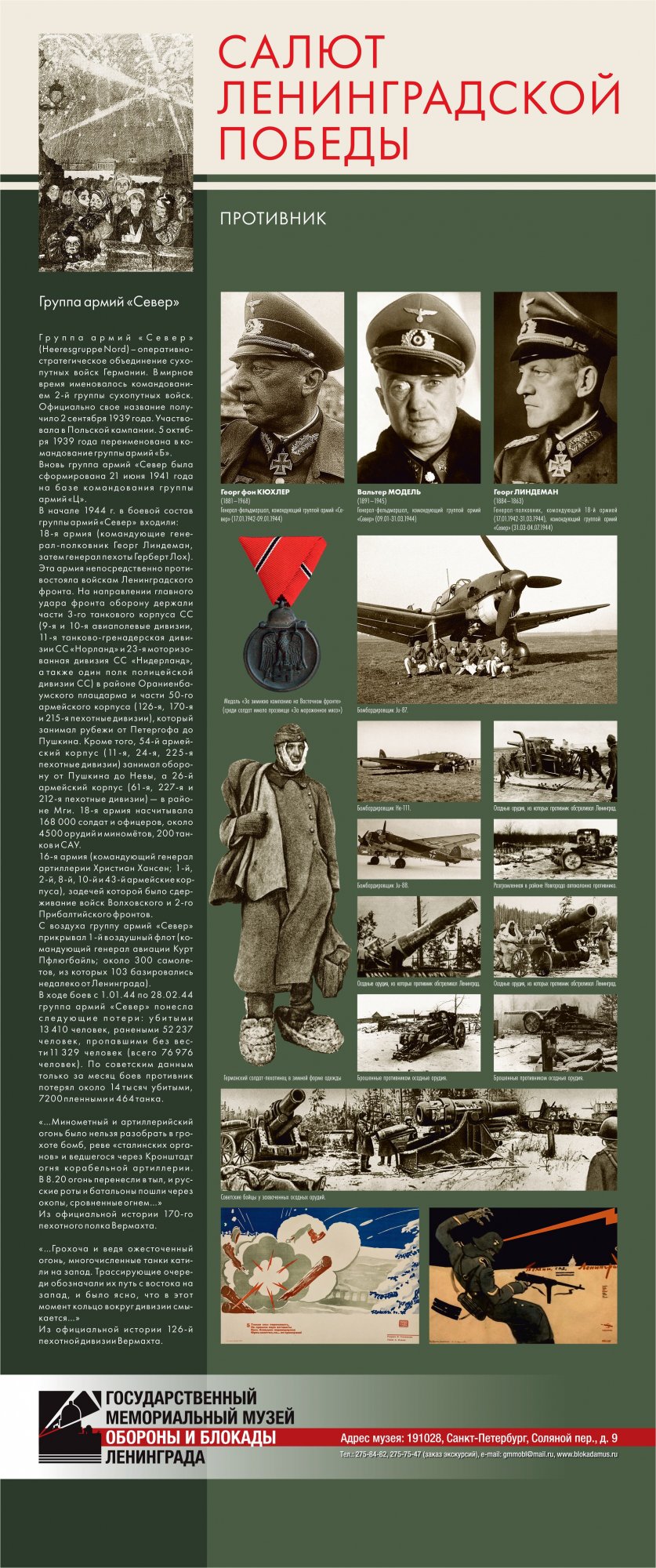 Выставка «Салют Ленинградской победы» предоставлена Музеем обороны и блокады Ленинграда Краеведческому музею города Великие Луки. Их Выставка рассказывает о последнем, решительном наступлении Красной Армии, которое полностью освободило Ленинград от немецко-фашистской блокады. Благодаря выставке можно узнать не только о подготовке операции, роли различных родов войск в полном освобождении Ленинграда от немецко-фашистской блокады, но и проследить ход боевых действий.